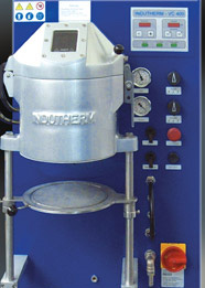 This machine is especially suitable for melting and casting of defined quantities of metal such as one-kilogram ingots. During the melting process, the crucible chamber is flooded with inert gas.